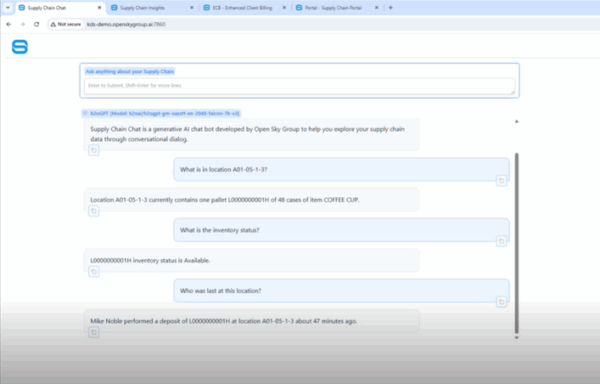 - Supply Chain Chat allows users to interact with the system securely using natural language, making retrieving information and resolving operational questions easier. It can also be used for customer service support, sales promotions, and manual documentation.