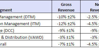 Our recent survey and analysis shows gross revenue (turnover) for 3PLs down by 8.8% for 2009. Net revenues (gross margins) were less impacted for many non-asset transportation managers and leading value-added warehousing 3PLs.